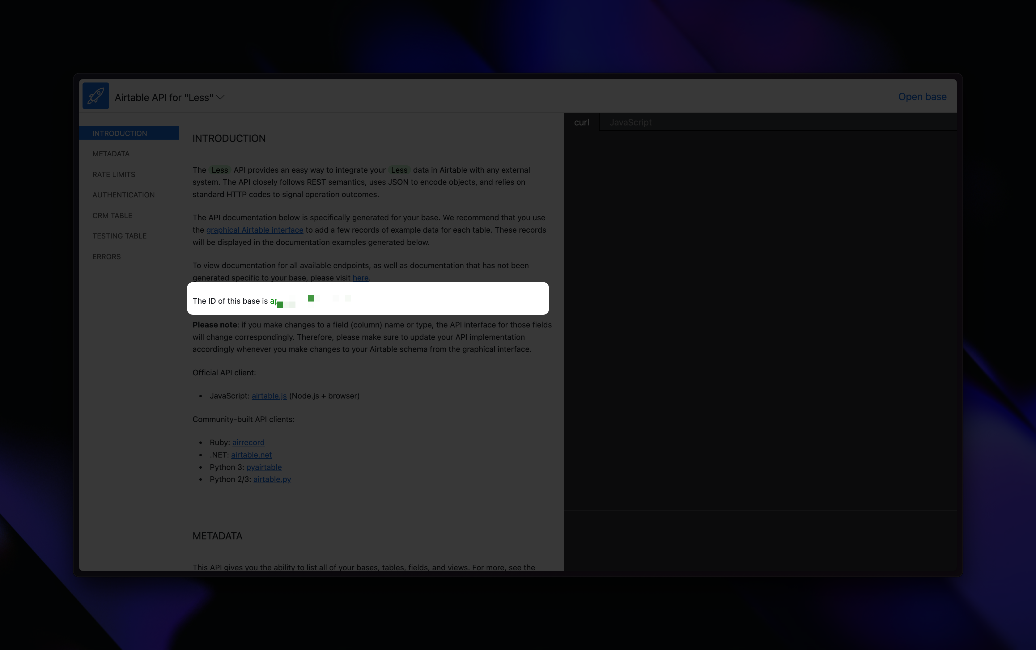 Find Base ID from API Documentation