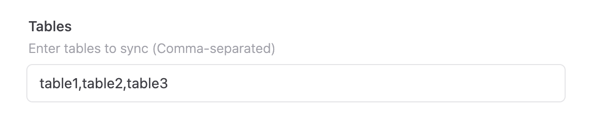 Input a comma-separated list of the tables you want to extract. Your user account must have appropriate permissions for the selected tables.