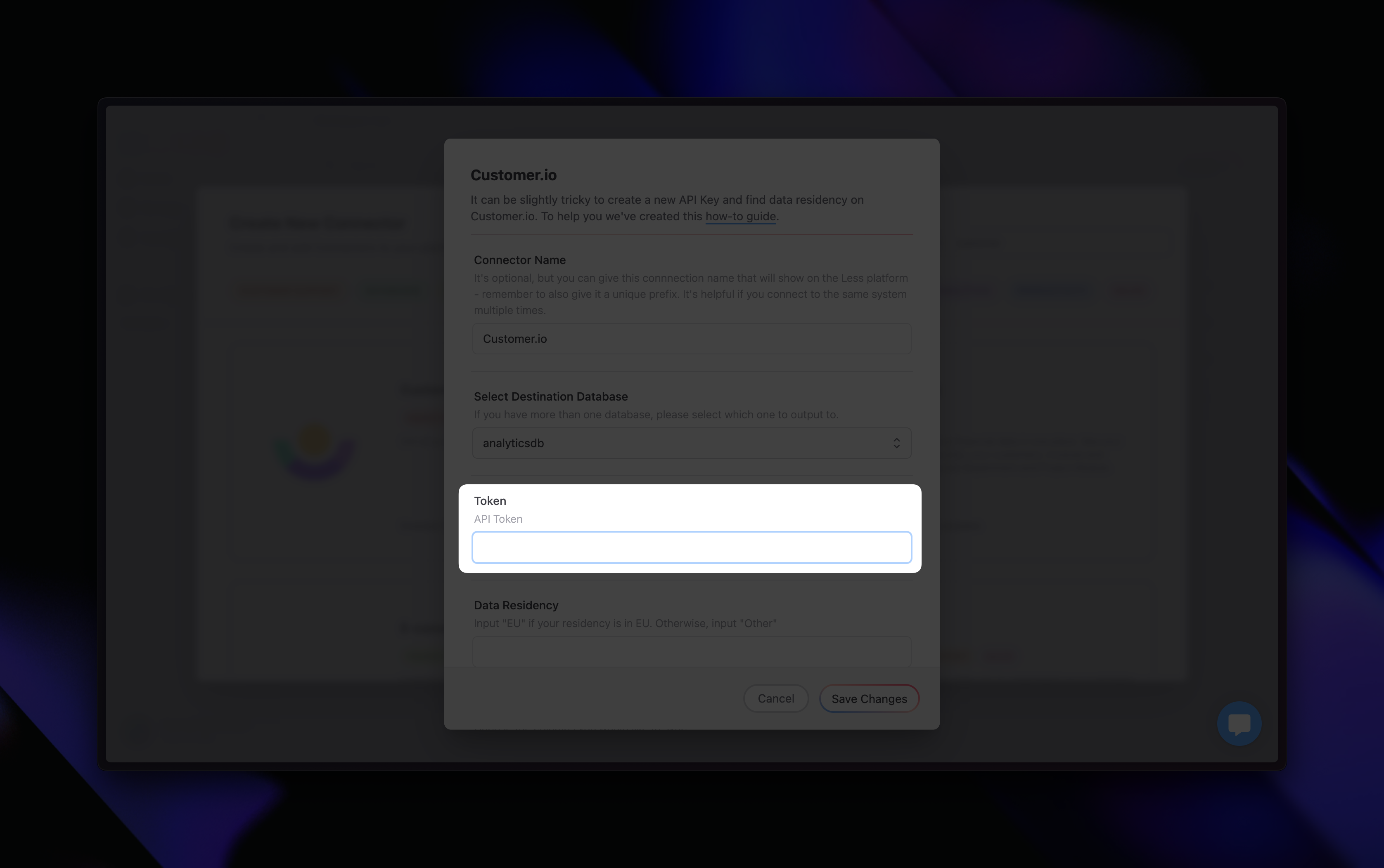 Tokens-based connectors rely on you manually creating a token in the system you’re trying to extract data from. Customer.io (below) is an example of a connector where you have to create a token in Customer.io and copy/paste it into Less in order to authenticate.We encrypt data tokens everywhere so you can safely input your API tokens