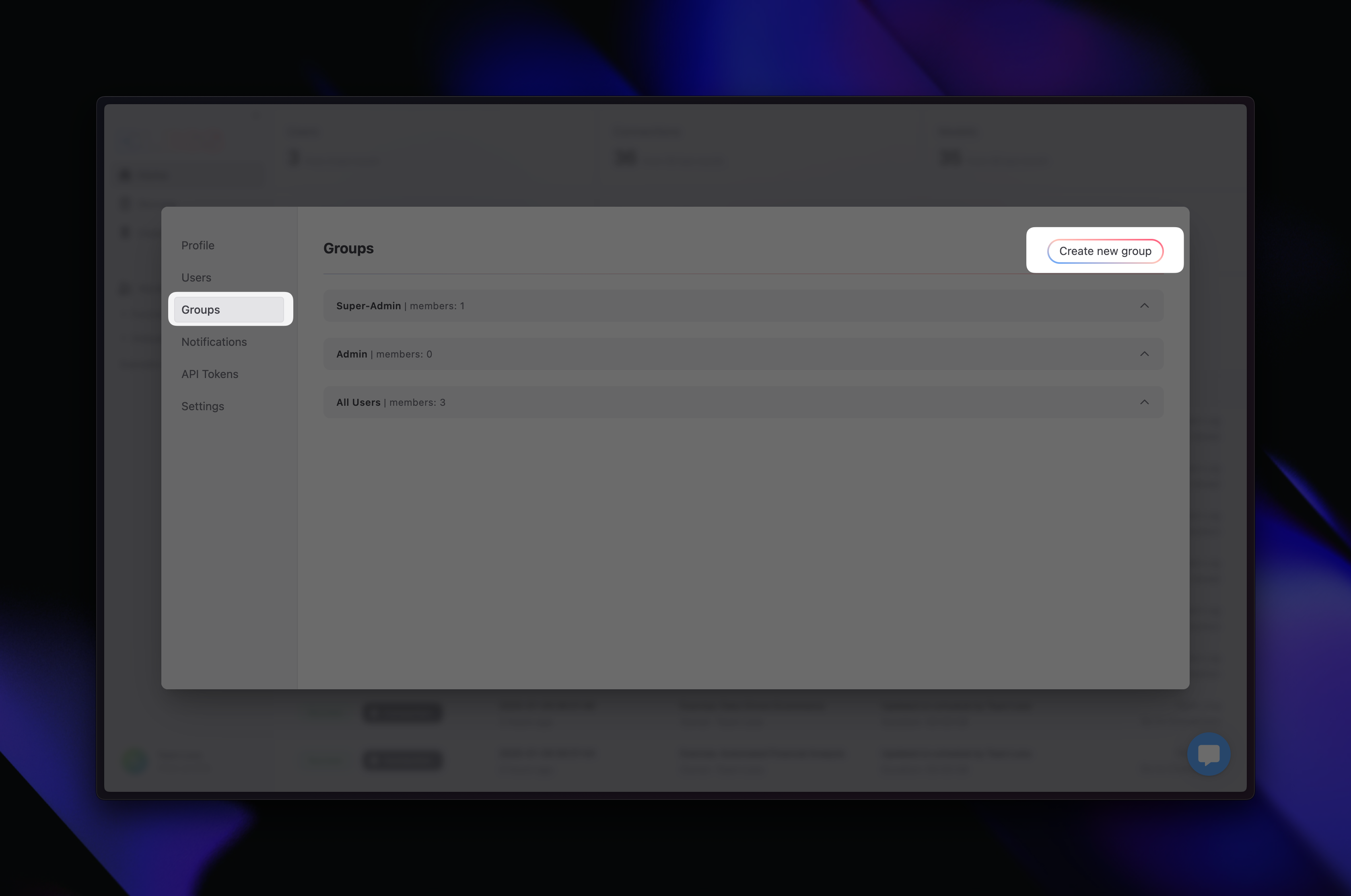 If you don’t see the Create new group button it is because you not an Admin or Super-Admin. Reach out to a team member in either group to get you set up with creating new groups.