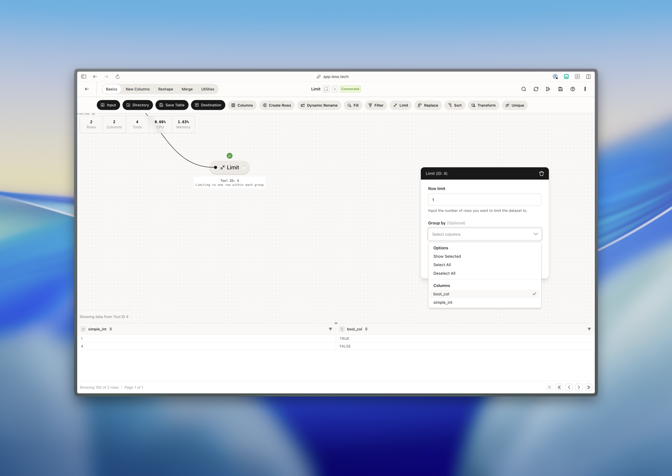 If you want to limit the dataset within a group, you can select the group by column(s) here.