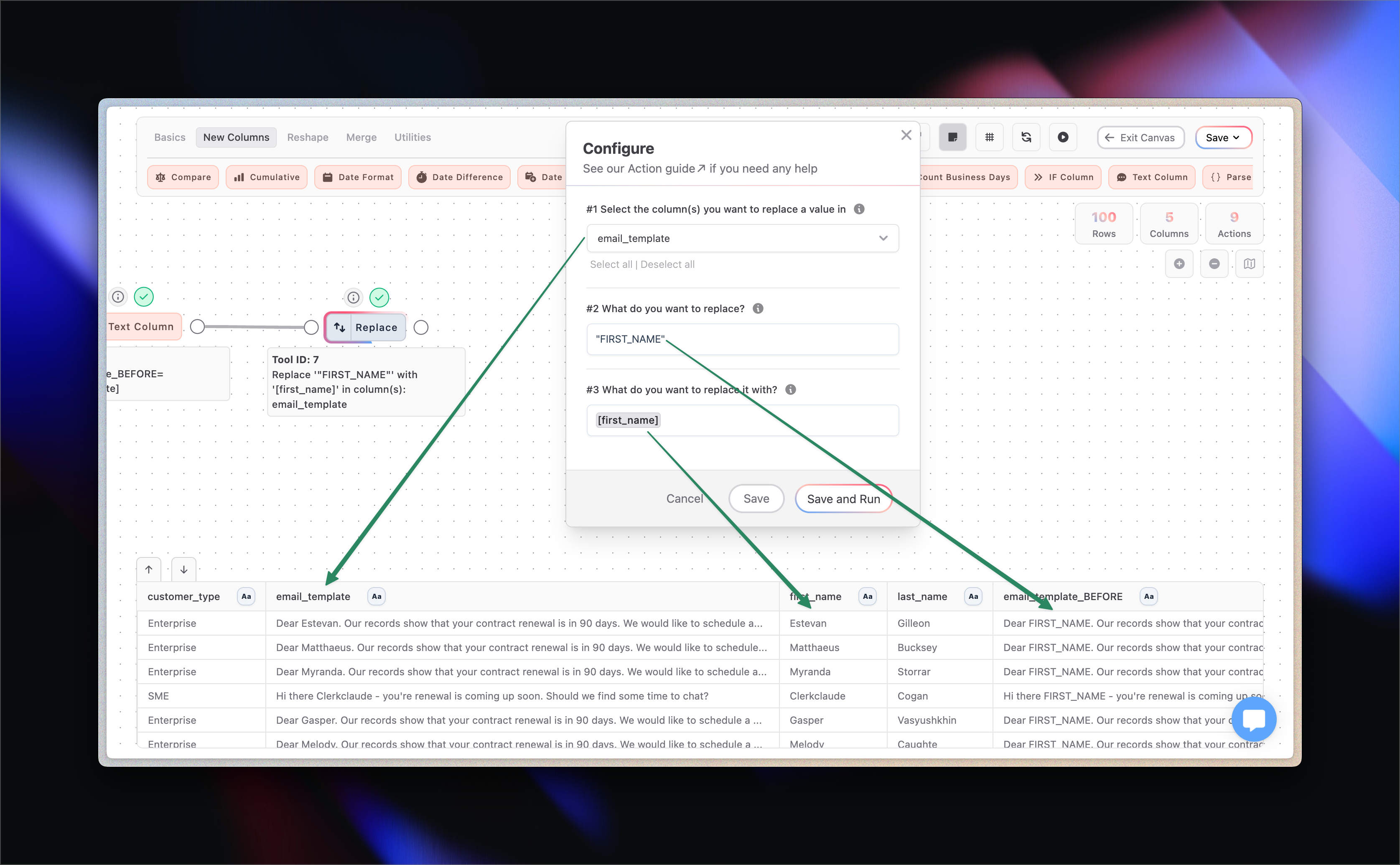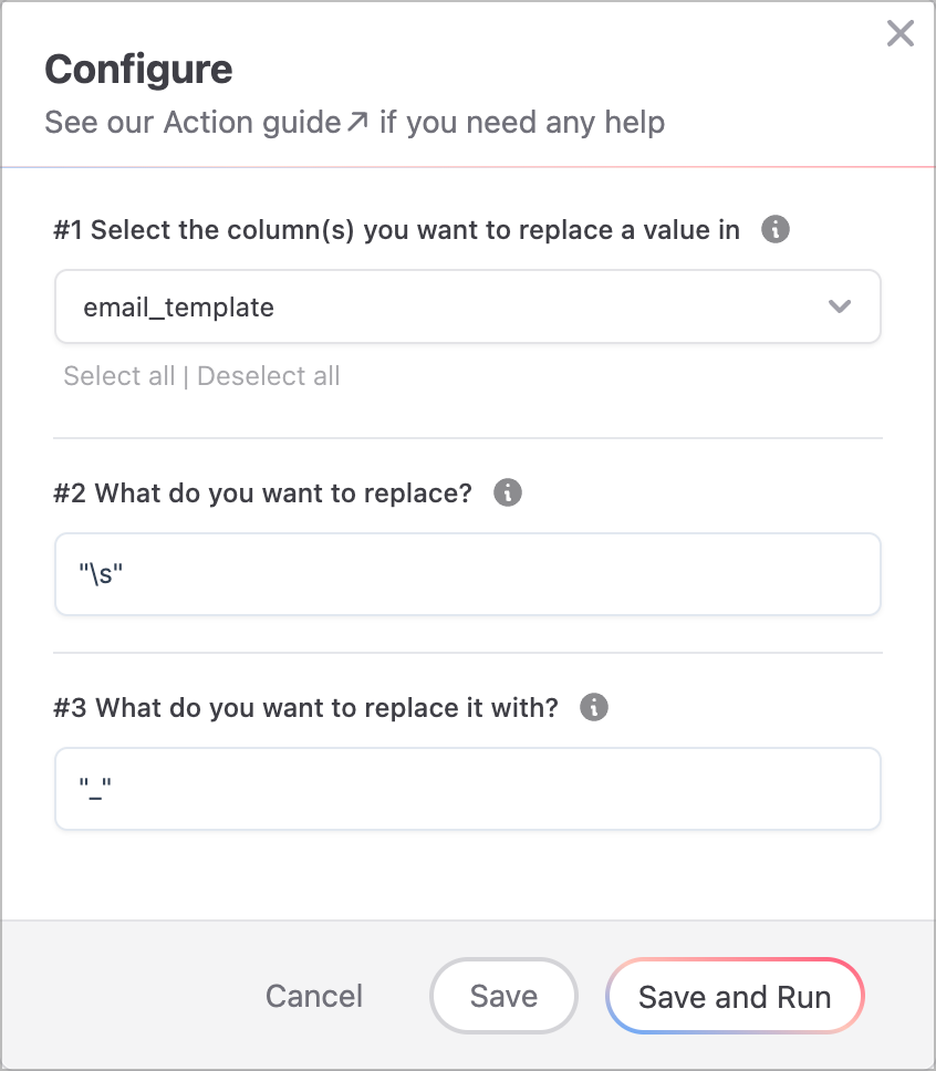 The Replace tool is comprised of three required input.You can replace spaces in Step 2 using “\s” and input spaces in Step 3