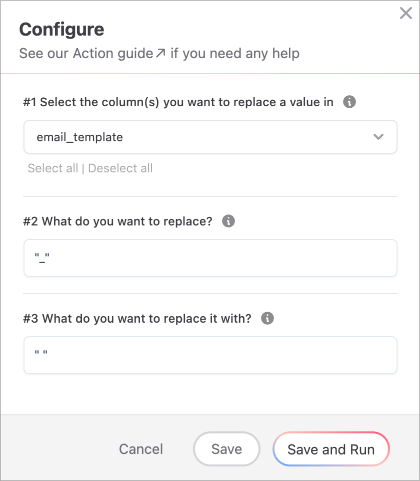Input the value you want to replace. You should always use double-quotes ("") around your input - such as “this”. You can also reference existing columns in your dataset to dynamicallly find the values you would like to replace