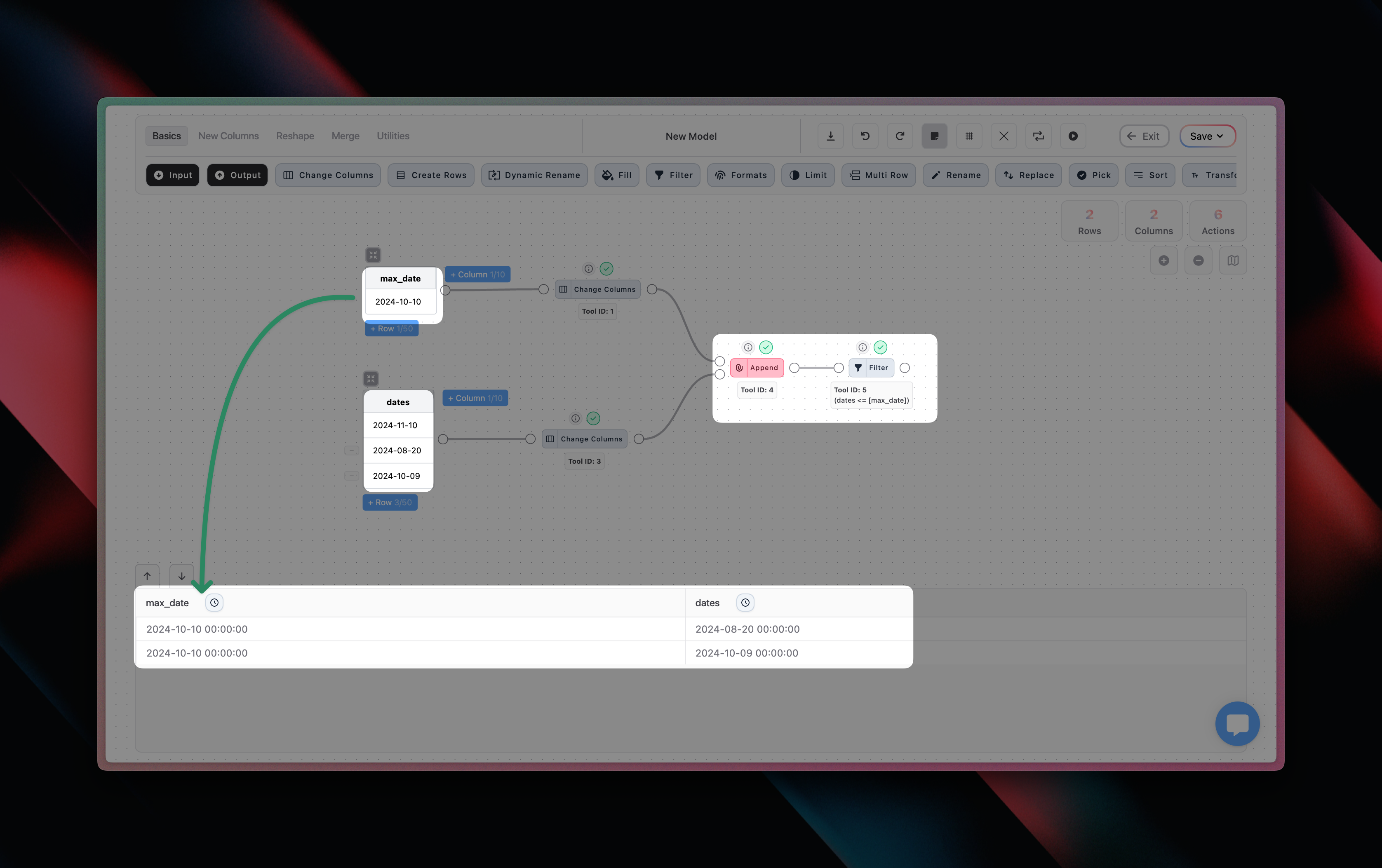 The Append tool doesn’t require any configuration. All you have to do is connect your two datasets and run the tool.When To Use