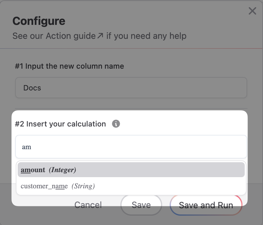 Start typing a column name to reference it - for example Amount