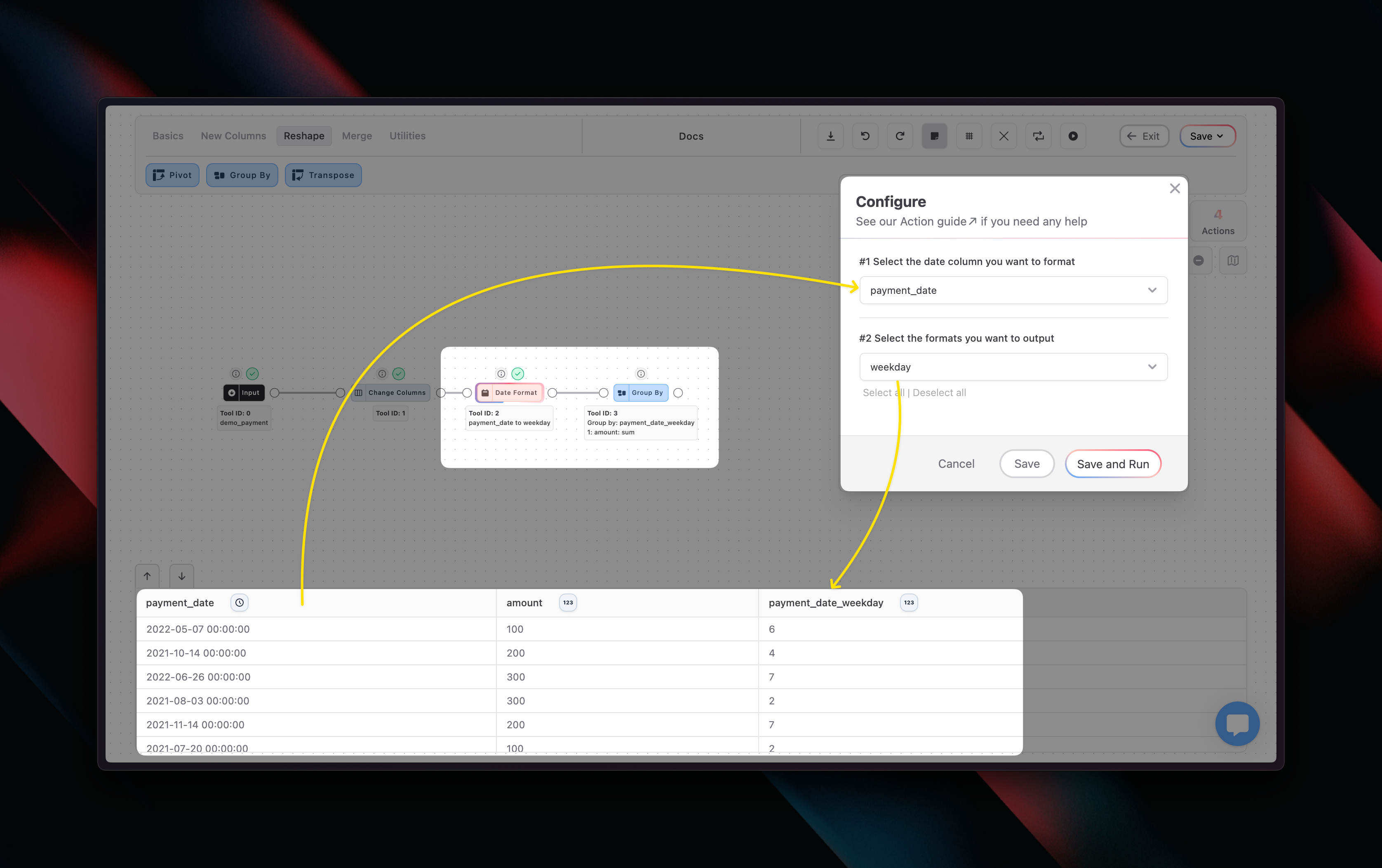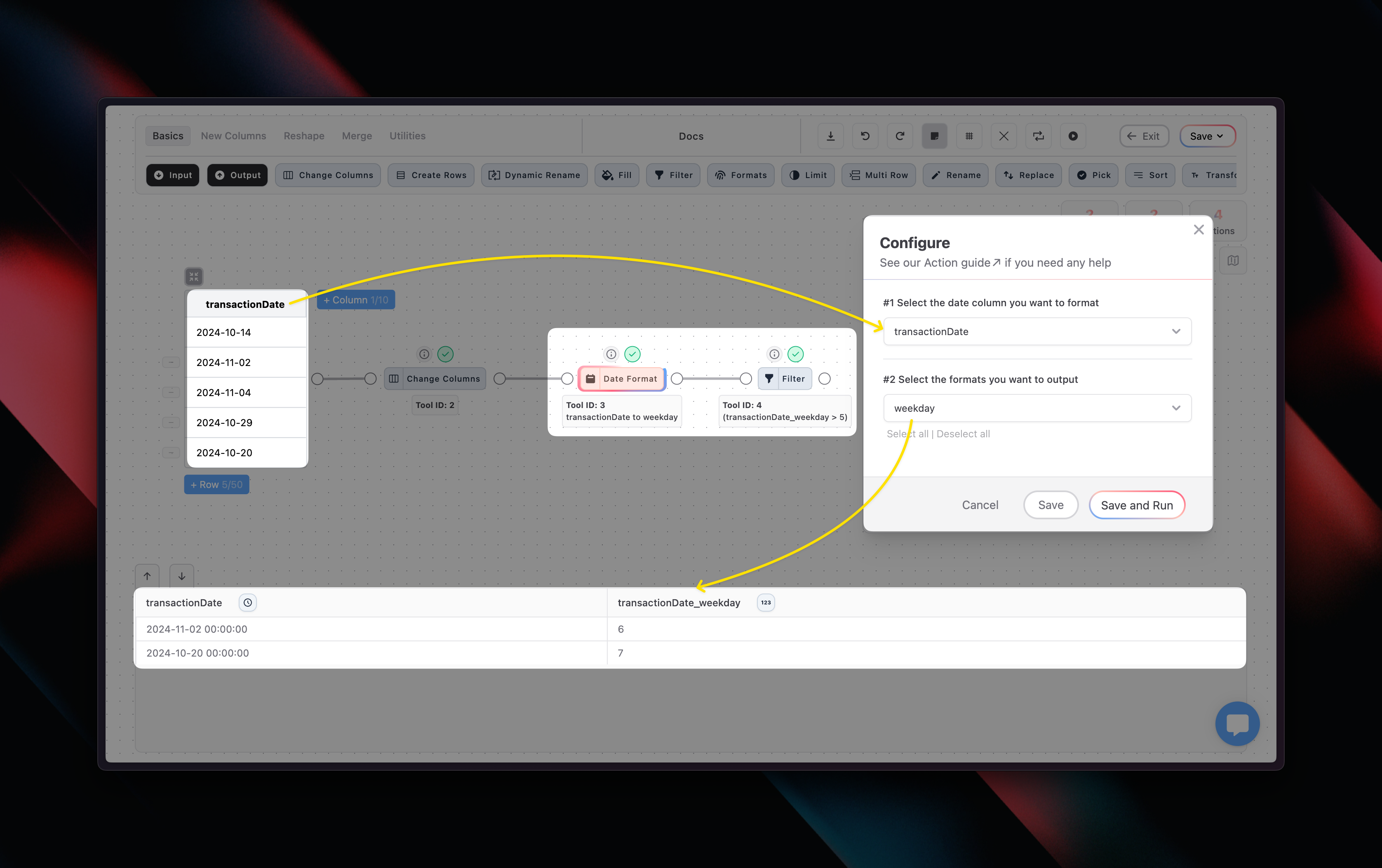 The Date Format tool is typically used alongside other tools. The output of the tool oftentimes is necessary to continue the analysis.- Extract the year of a date column and use a Filter tool and Today tool to ensure you only look at the current year