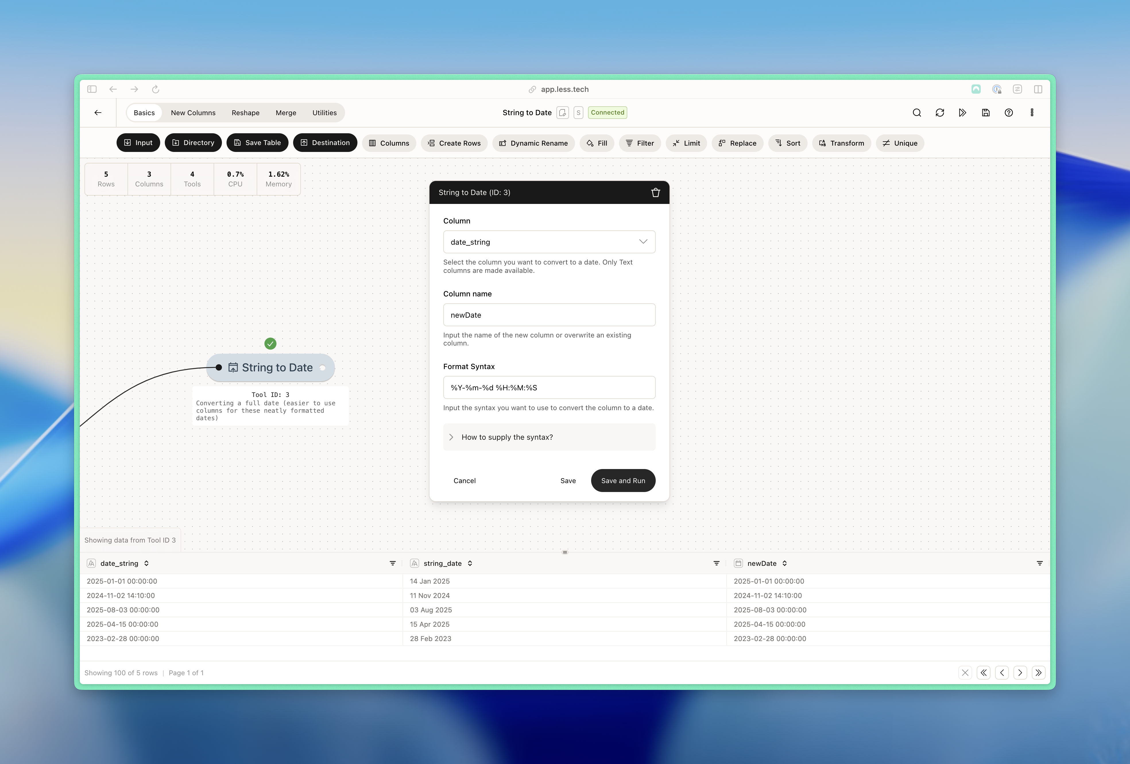 The String to Date tool consists of three required input.1