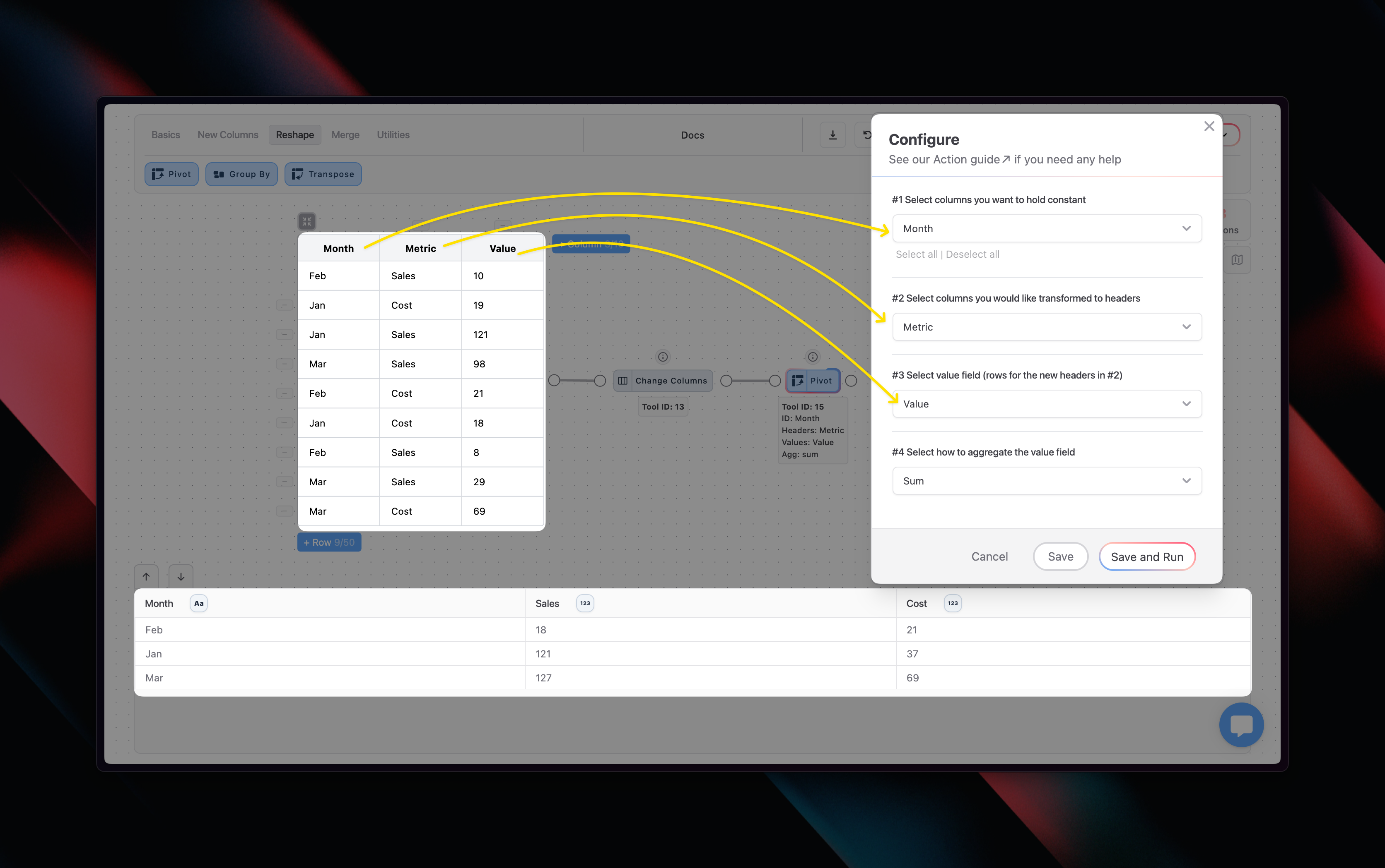 Select the column(s) to hold constant. You can imagine that the columns you select here will remain on rows.