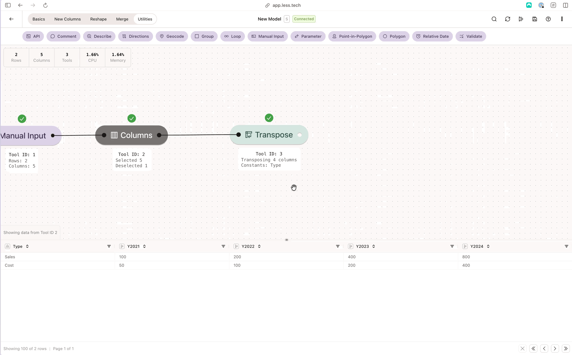 Select the column(s) to hold constant. You can imagine that the columns you select here will remain on rows.