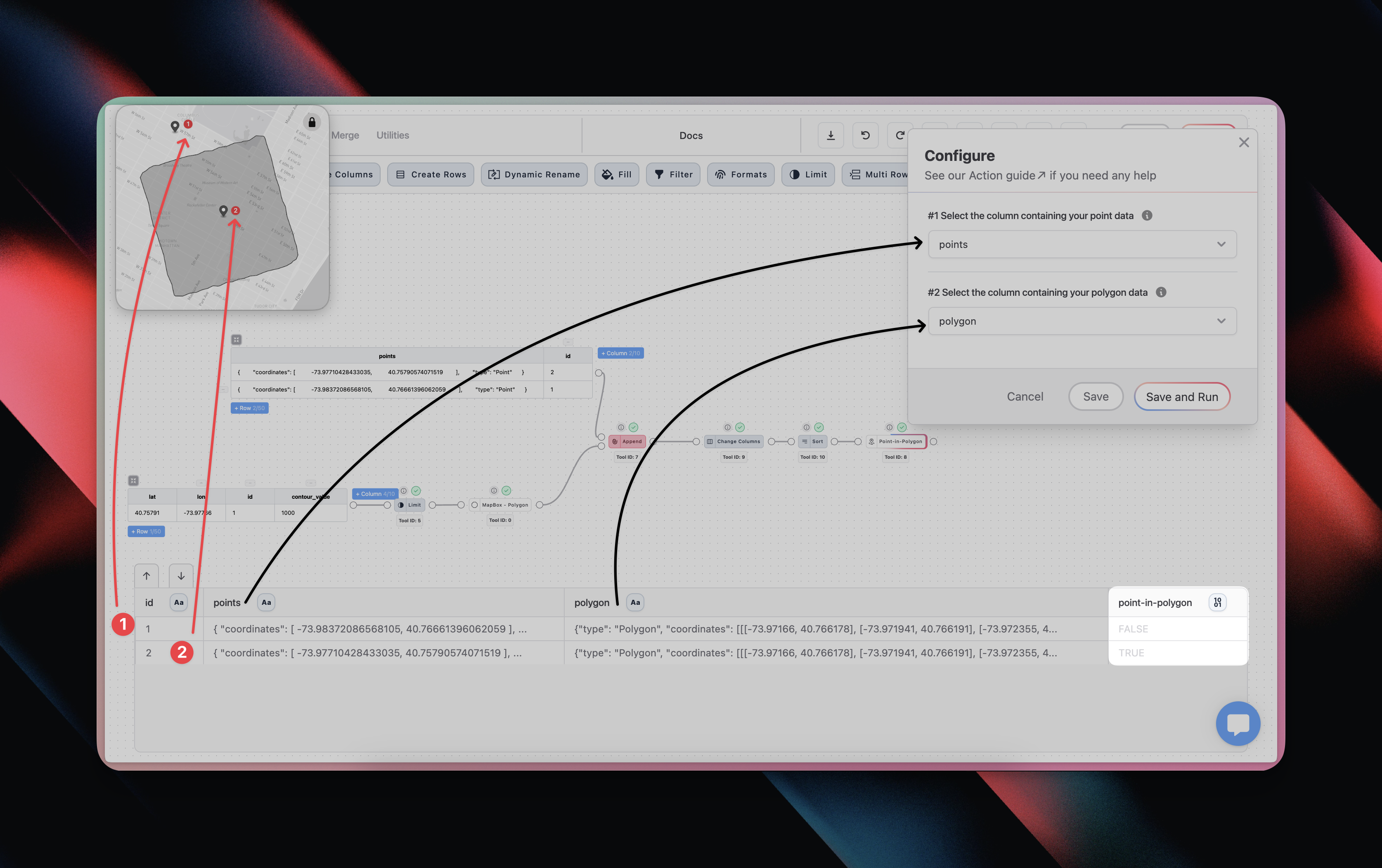 The Point-in-Polygon can be used for a wide range of use cases:- You might be selecting a new warehouse location and want to check how many of your past year’s orders have been delivered within 30 minutes drivetime of each of the new warehouse options