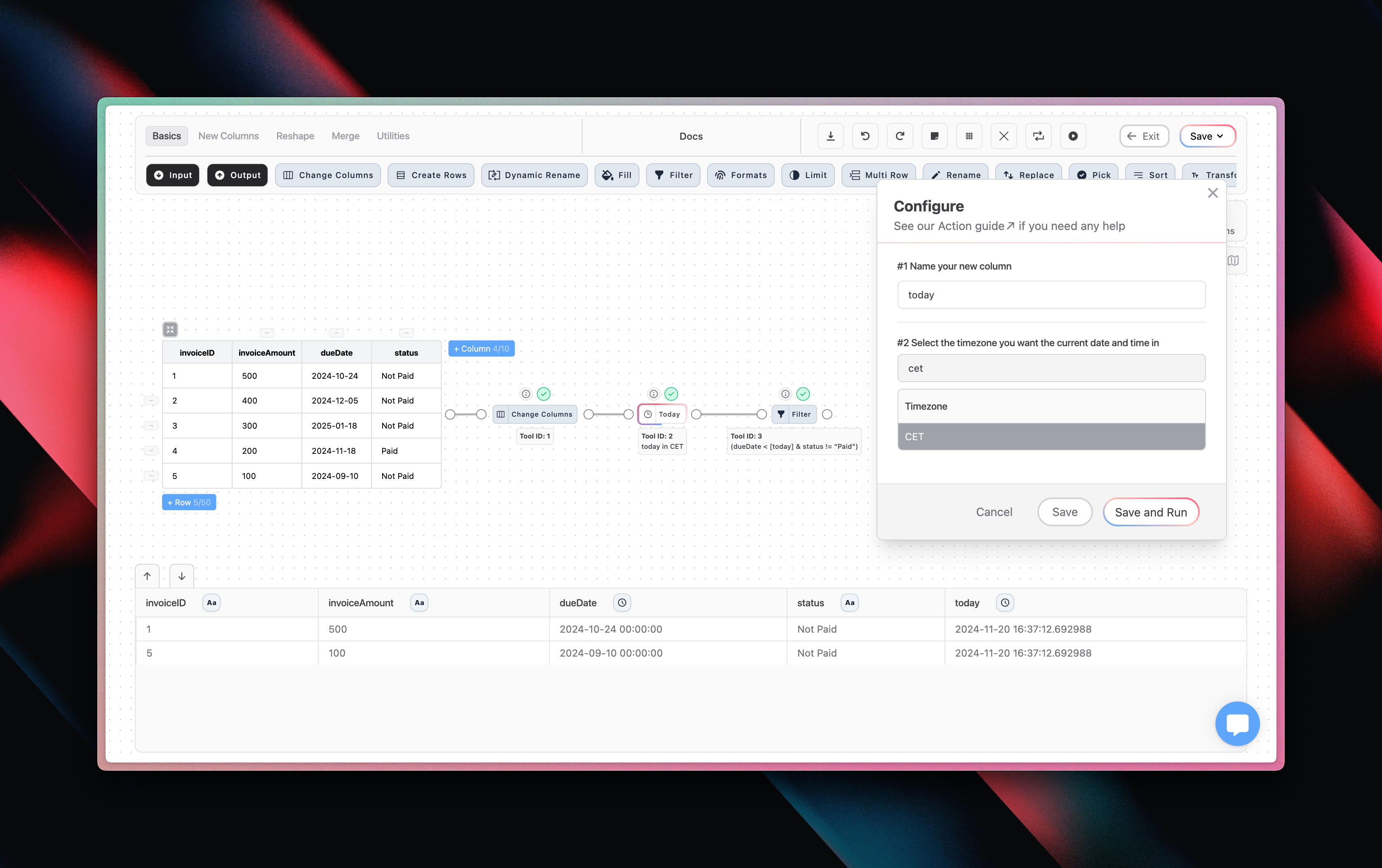 The Today tool can be used for a lot of different scenarios. The Today tool is excellent whenever you need some dynamic date filtering.- Remove all invoices with a due date before the current date to get all overdue invoices